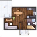 PARTER (43m2): salon, jadalnia, kuchnia, łazienka z WC