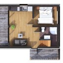 PARTER (33,6m2): salon, kuchnia w aneksie, sypialnia, łazienka z WC