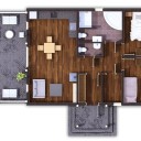 PARTER (82m2): salon, jadalnia, kuchnia, 2 sypialnie, 2 łazienki z WC.